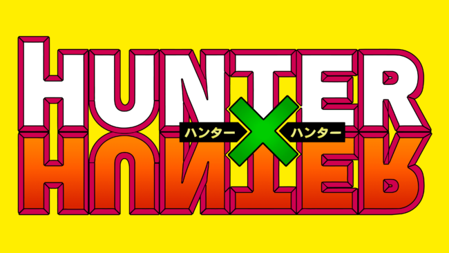 La palabra «HUNTER» en la segunda línea parece aún más inusual. El diseñador lo ha colocado de tal manera que se asemeja a una imagen de espejo. Es decir, cada letra permanece en su lugar (se conserva la secuencia), pero se da la vuelta. Solo se usa verde oscuro para estas letras. Entre las dos mitades del logo hay una placa rectangular negra con jeroglíficos blancos. Está tachado con una cruz roja, que consta de líneas diagonales anchas. Así es como el autor jugó con la «x» en el nombre de Hunter x Hunter.