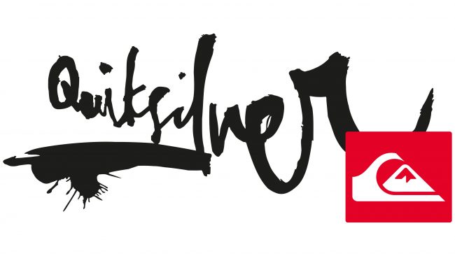 Después del rediseño, hubo un estilo de ortografía actualizado para la palabra «Quicksilver». Ahora parece moderno, incluso innovador, porque está ejecutado con una letra manuscrita fluida con una imitación de letra descuidada. Las letras están dispuestas en perspectiva: de pequeña a grande, es decir, el comienzo de la inscripción es visualmente distante y el final, por el contrario, está más cerca. En la parte inferior hay varias manchas de tinta, como si intentaran escribir el nombre en caracteres japoneses, pero fue en vano. A la derecha, hay un icono de marca con una montaña y una ola. Es cuadrado y parece un corte del emblema anterior.